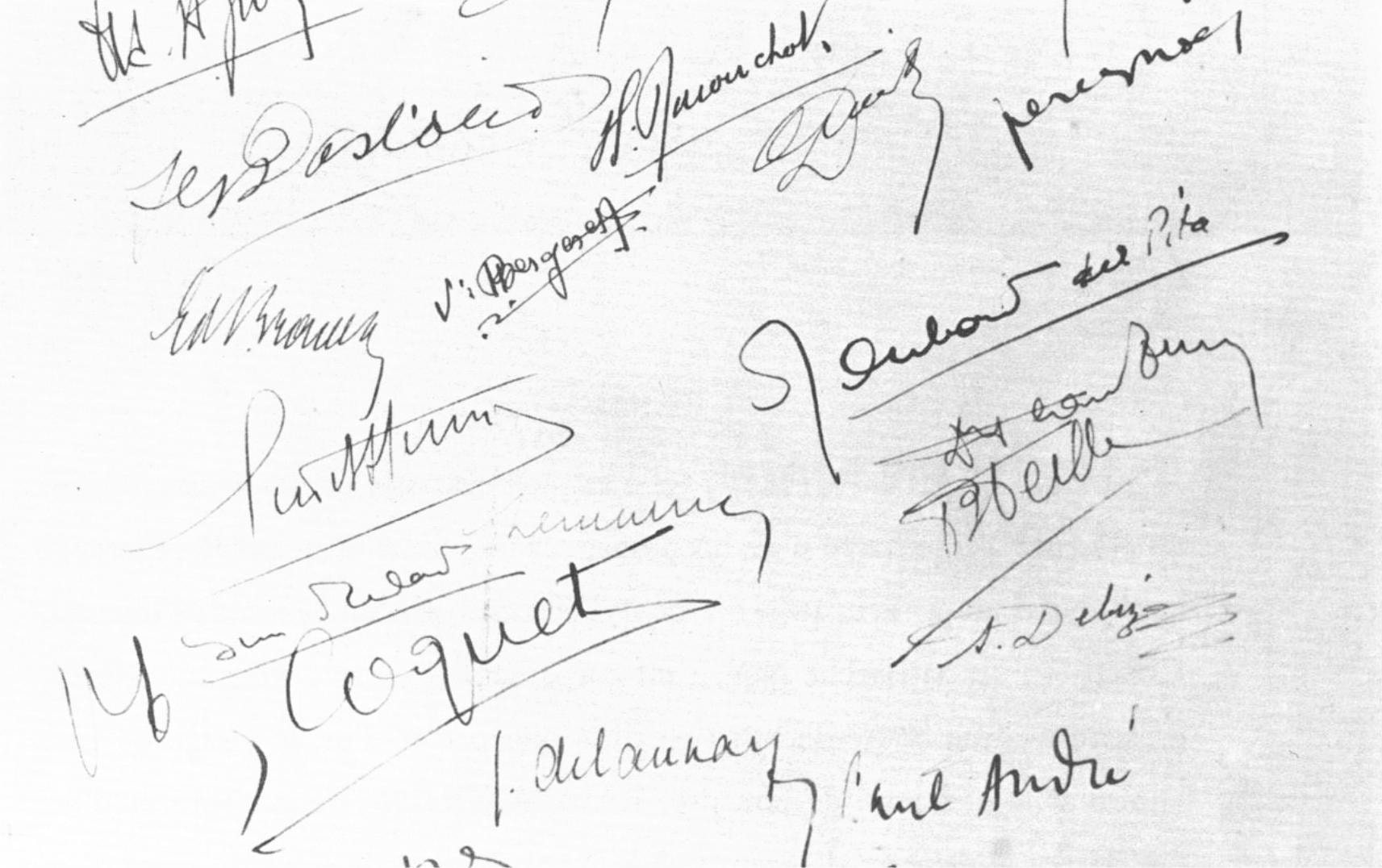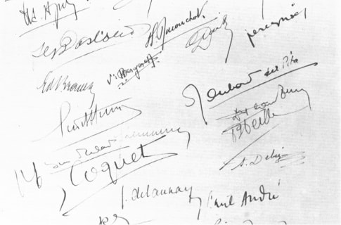 The signatures of members of the Chevaliers du Tastevin Brotherhood on the opening chapter.
